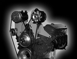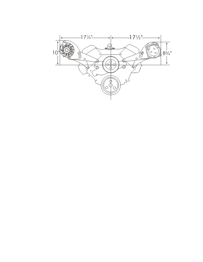 This bracket is designed to be used with the factory alternator mount, eliminating the need to purchase both brackets. The compressor belt runs in the factory A.C. groove and the bracket is complete with idler assembly. |