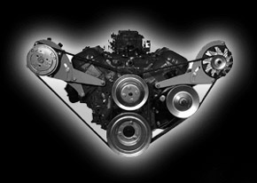 Engineered for low hood applications. Works great on any vehicle with a wide engine compartment - Trucks, 50-60's cars, etc. Bolts to the heads and water pump. WILL WORK with factory power steering pump. |