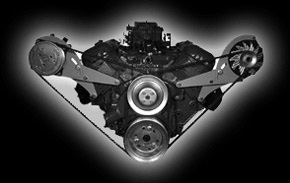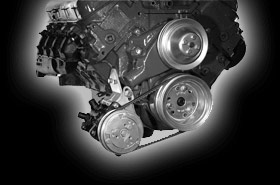 Engineered for low hood applications. Works great on any vehicle with a wide engine compartment - Trucks, 50-60's cars, etc. Bolts to the heads and water pump. |