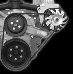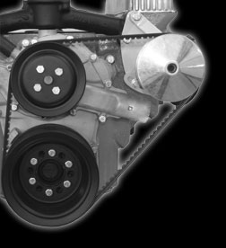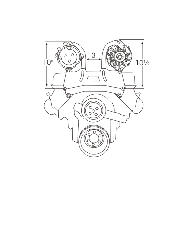 Due to the renewed intrest in nostalgia motors we have designed a bracket for the 401/425 Nailhead Buick. Steel bracket mounts to the intake and water crossover manifold. Two groove water pump and crankshaft pulleys are required for this application. |