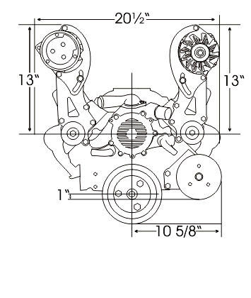 These brackets are designed for the 1992-96 Chevrolet LT-1. Bracket assemblies are available for the Camaro-Firebird with the 1-5/16" thick balancer or the Corvette engines with the 2-1/8" thick balancer. If using a Caprice, Impala or Buick engine it will require a crankshaft hub G.M. part number 12553250 used on 1992-95 Corvette and Camaro-Firebird engines.
