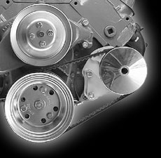 Power Steering Pump BracketThis Big Block bracket is designed for the Chevrolet Saginaw non - metric power steering pumps with the attached reservoir. They allow clearance for the alternator belt no matter where the alternator is mounted. These pumps were used on most Chevrolet applications with short and long water pumps until the early 1980's. Short water pump applications are normally driven off an add - on third crankshaft pulley. These pulleys are available from Chevrolet under Part Number 3751232 or from us.(Short Water Pump Only). |