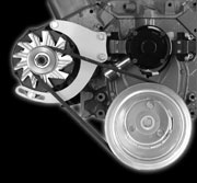 This mid-mount alternator bracket is designed to work with CSR (and possibly other) electric water pumps. The bracket bolts solid to the head and water pump, and lines the alternator up with a long water pump crank shaft pulley. |