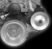 Type 2 Remote Reservoir PumpThis bracket is designed to be used with the metric G.M. remote reservoir type 2 pump. Designed for street rod applications, it sits high enough to clear most chassis parts and steering gears. Pump is driven off the inner groove of a 3 groove crank pulley. Pump uses an aluminum V-belt pulley available from us or other street rod suppliers. |