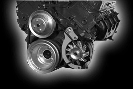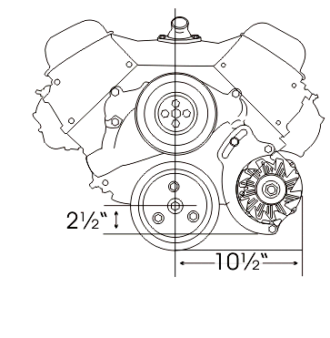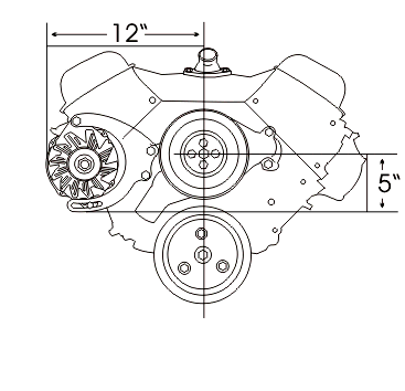 Designed for cars with low hood clearance - Camaros, Chevelles, etc. Works on any vehicle with wide engine compartment. Bolts to head and water pump. Works with factory alternator and power steering pump. |
