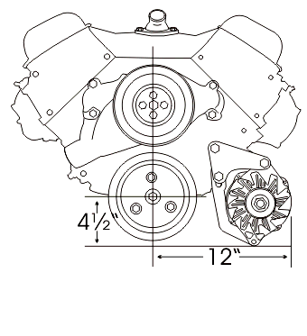 LOW ALT.Mounts the alternator low on the drivers side. A very strong lower bracket with a lot of adjustment. Check the dimension requirements before ordering. |