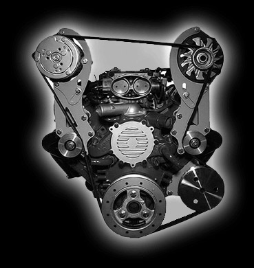 The brackets are furnished with all necessary hardware and illustrated instructions. The compressor and alternator brackets include CNC machined aluminum idler pulleys with double row bearings.