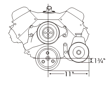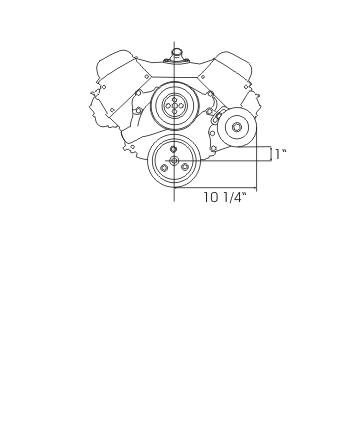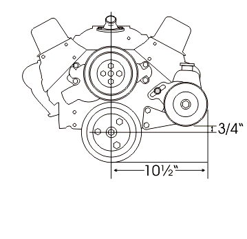 This bracket is designed to be used with the metric G.M. remote reservoir type 2 pump. Designed for street rod applications, it sits high enough to clear most chassis parts and steering gears. WILL NOT WORK WITH LOW PROFILE BRACKETS. Pump is driven off the outer groove of a 3 groove crank pulley. Pump uses an aluminum V-belt pulley available from us or other street rod suppliers. (Short Water Pump only). |