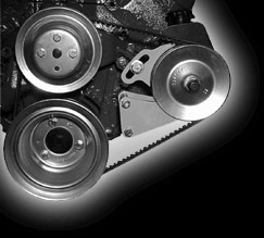 Type 2 Remote Reservoir PumpThis bracket is designed to be used with the metric G.M. remote reservoir type 2 pump. Designed for street rod applications, it sits high enough to clear most chassis parts and steering gears. WILL NOT WORK WITH LOW PROFILE BRACKETS. Pump is driven off the outer groove of a 3 groove crank pulley. Pump uses an aluminum V-belt pulley available from us or other street rod suppliers. (Short Water Pump only). |