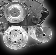 Power Steering Pump BracketThis Big Block bracket is designed for the Chevrolet Saginaw non - metric power steering pumps with the attached reservoir. They allow clearance for the alternator belt no matter where the alternator is mounted. These pumps were used on most Chevrolet applications with short and long water pumps until the early 1980's. Short water pump applications are normally driven off an add - on third crankshaft pulley. These pulleys are available from Chevrolet under Part Number 3751232 or from us.(Short Water Pump Only). |