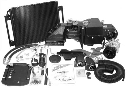 Sure Fit kits are designed to place the evaporator case and hoses completely behind the dash. In most cases the system will be controlled by our adapters for your stock dash controls or with an optional new reproduction control panel. Some early truck kits must use additional switches. All Sure Fit systems provide floor heat and dehumidified defroster. Where originally equipped, a/c air vents through factory dash louvers.